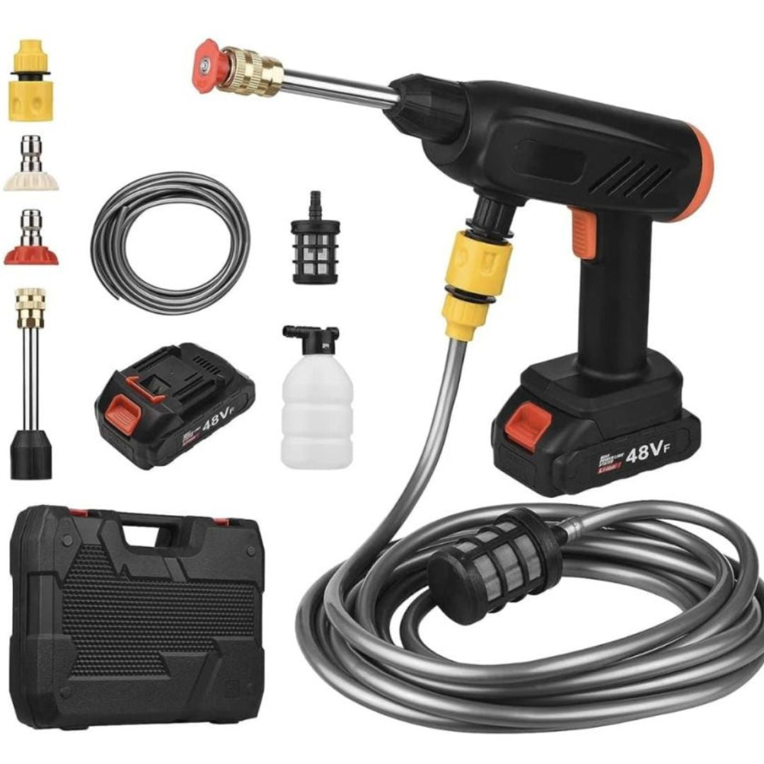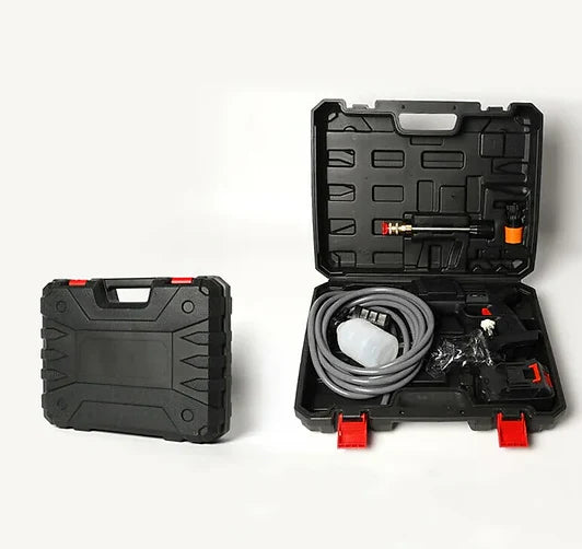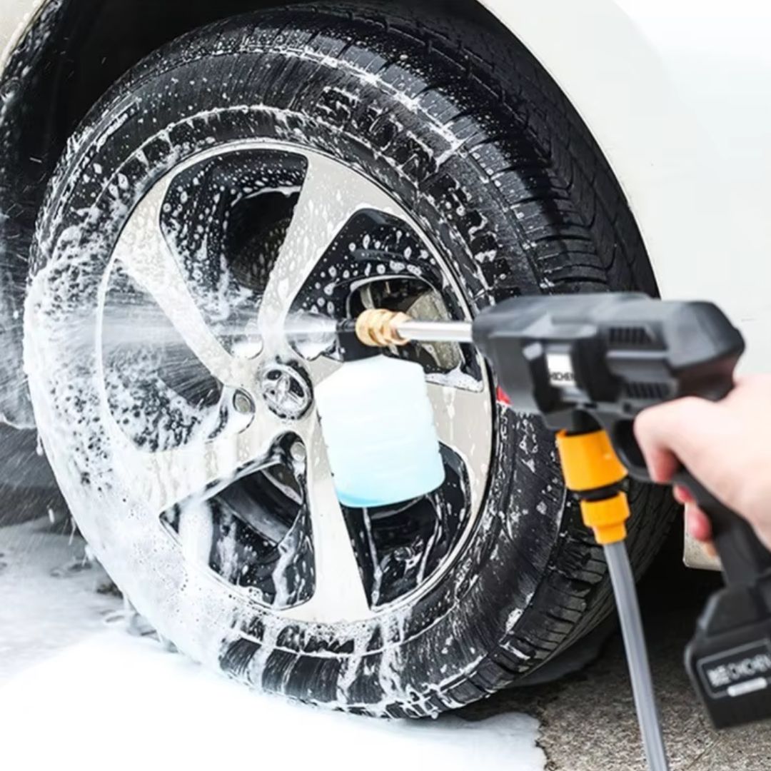 The CarWasher offers total portability, while traditional washer depend on wires and running water, it's rechargeable battery guarantees freedom of movement, unlike conventional ones, which disconnect a power source, it surpasses traditional washers, which are heavier and more complicated to use.